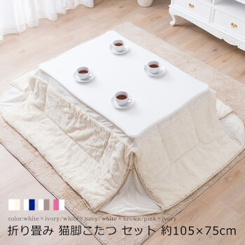 こたつ セット 折り畳み猫脚こたつ+こたつ布団セット 約105×75 こたつ単品+こたつ布団 こたつ掛布団付 リビングテーブル ローテーブル 折りたたみ式 猫足 〔B〕【送料無料】アンティーク エレガント 姫系 ホワイト ピンク