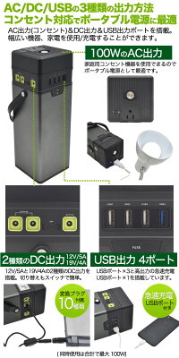 ■コンセント対応でポータブル電源に最適!コンセント機器(AC電源)を使用できるのでアウトドア、キャンプ、災害時、緊急時になど、電源供給が不安定な環境のポータブル電源に最適です。